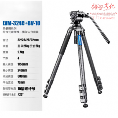 徕图(Leofoto)LVM-324C+BV-10 黑曼巴微单反相机摄像拍视频专业碳纤维三脚架搭配液压云台套装 SKU:yzwhyp315576