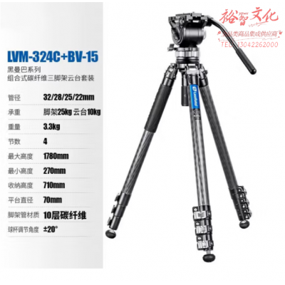 徕图(Leofoto)LVM-324C+BV-15 黑曼巴微单反相机摄像拍视频专业碳纤维三脚架搭配液压云台套装 SKU:yzwhyp315579