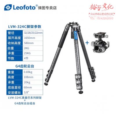 徕图(Leofoto)LVM-324C+G4 黑曼巴微单反相机摄像拍视频专业碳纤维三脚架搭配液压云台套装 SKU:yzwhyp315582