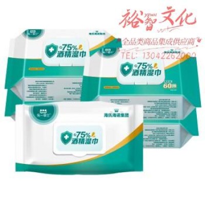 海氏海诺乐一享三 75%酒精湿巾消毒棉片 15*18cm大号 60抽*5包 SKU:yzwhyp108311