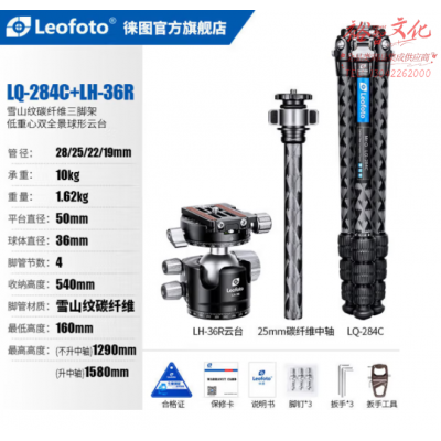 徕图(Leofoto)LQ-284C+LH-36R 雪山纹多功能碳纤维三脚架云台套装 SKU:yzwhyp315587