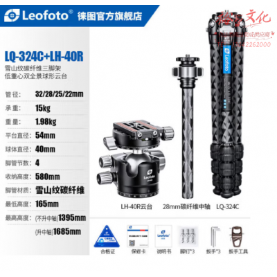 徕图(Leofoto)LQ-324C+LH-40R 雪山纹多功能碳纤维三脚架云台套装 SKU:yzwhyp315591