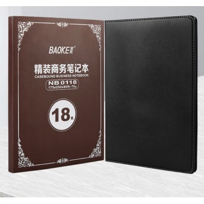 宝克(baoke) NB0118 PU优质皮革精装商务笔记本/记事本/记录本/日记本 175*250mm 80页 1本装 黑色