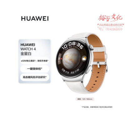 华为HUAWEI WATCH 4 金星白 46mm表盘 eSIM独立通话 一键微体检 高血糖风险评估研究 华为运动智能手表 SKU:yzwhyp108372