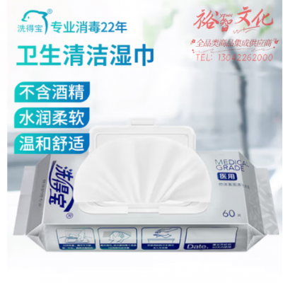 洗得宝季铵盐消毒湿巾60片医院用物体表面马桶消毒湿巾除菌湿巾杀菌消毒 SKU:yzwhyp108383