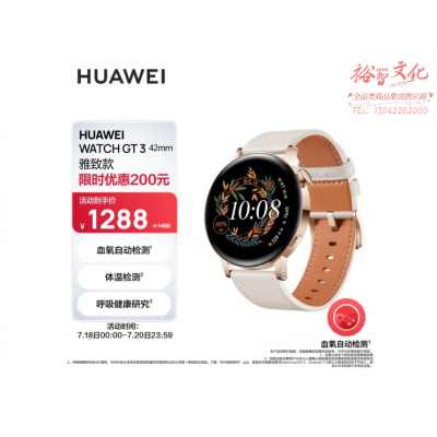 华为HUAWEI WATCH GT 3 白色雅致款 42mm表盘 华为手表 运动智能手表 血氧自动检测 智能心率监测 腕上微信 SKU:yzwhyp108396