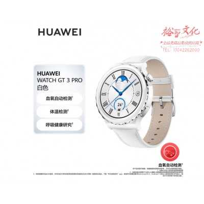 华为HUAWEI WATCH GT 3 Pro 白色真皮表带 42.9mm表盘 华为手表 运动智能手表 腕上微信 SKU:yzwhyp108400
