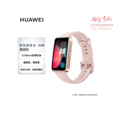 首页 > 体育设备设施 > 体育运动辅助设备 > 华为HUAWEI手环8 标准版 樱语粉 华为运动手环 智能手环 8.99毫米轻薄设计 心率、血氧、睡眠监测 磁吸快充 SKU:yzwhyp108407