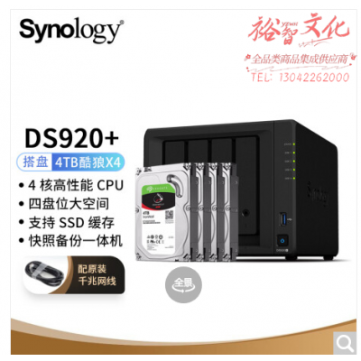 群晖(Synology)DS920+ 双核心4盘位NAS网络存储服务数据备份一体机 (内置2块8t硬盘) SKU:yzwhyp315666