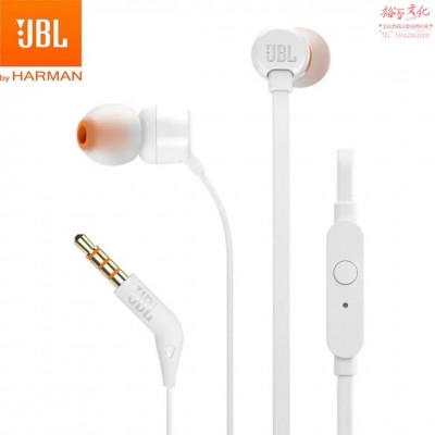 JBL T110 立体声入耳式耳机耳麦 运动耳机手机有线耳机带麦可通话 珍珠白 SKU:yzwhyp108562