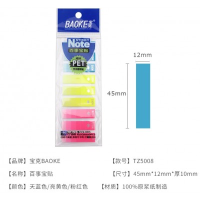 宝克(baoke) TZ5008 彩色混搭百事宝贴/便签条/便利贴/百事贴 学生用品/商务办公 45*12mm 100张 18袋装