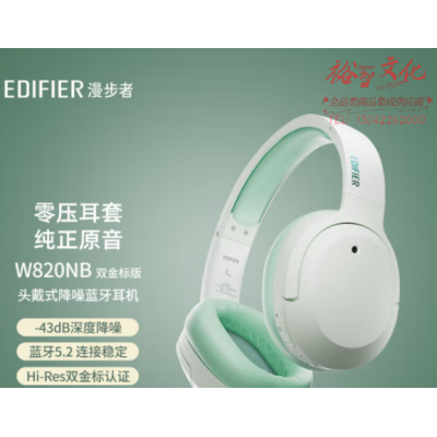 漫步者(EDIFIER)W820NB双金标版 头戴式主动降噪蓝牙耳机 蓝牙5.2 手机电脑笔记本耳机 柳芽青 SKU:yzwhyp108576