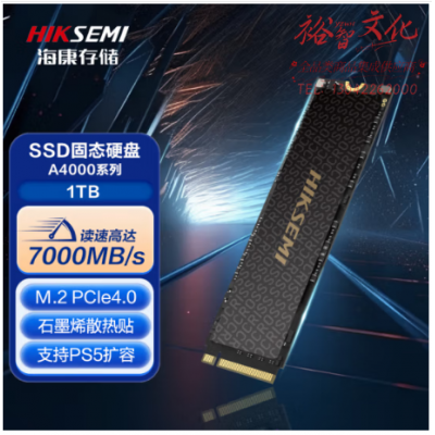海康威视(HIKVISION)1TB SSD固态硬盘 M.2接口(NVMe协议PCIe 4.0 x4) A4000系列 SKU:yzwhyp108604