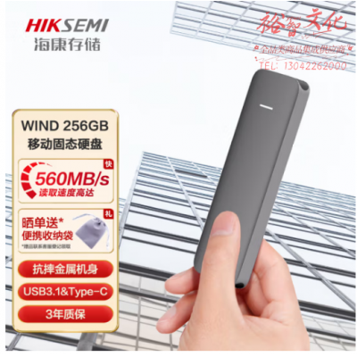 首页 > 信息化设备 > 移动存储设备 > 海康威视(HIKVISION)HS-ESSD-WIND 256G移动固态硬盘(PSSD)Type-c USB3.1接口 WIND 256GB 高速560MB/s 防震抗摔 SKU:yzwhyp108621