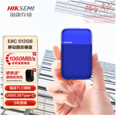 首页 > 信息化设备 > 移动存储设备 > 海康威视(HIKVISION)HS-ESSD-E8C 512GB NVMe 移动固态硬盘(PSSD)Type-c USB3.2接口 E8C 512GB 电光蓝色 高速1060MB/s 防尘抗摔 SKU:yzwhyp108645