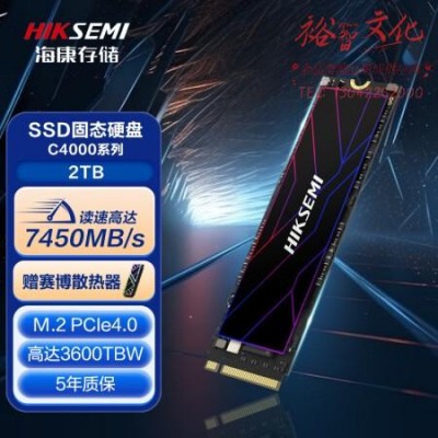 海康威视(HIKVISION)2TB SSD固态硬盘 M.2接口(NVMe协议PCIe 4.0 x4) C4000系列 SKU:yzwhyp108671