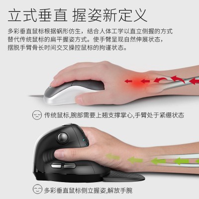 多彩(DeLUX) M618XSU 人体工学鼠标 垂直鼠标 有线鼠标 商务办公 USB接口即插即用 笔记本台式机鼠标 黑色 SKU:yzwhyp203293