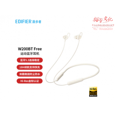 漫步者(EDIFIER)W200BT Free 颈挂式无线运动蓝牙耳机 蓝牙5.3 手机耳机 通话降噪耳机 白色 SKU:yzwhyp108716