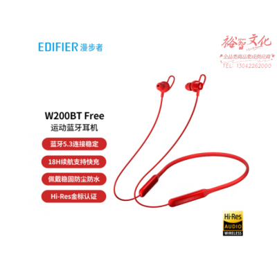 漫步者(EDIFIER)W200BT Free 颈挂式无线运动蓝牙耳机 蓝牙5.3 手机耳机 通话降噪耳机 红色 SKU:yzwhyp108717