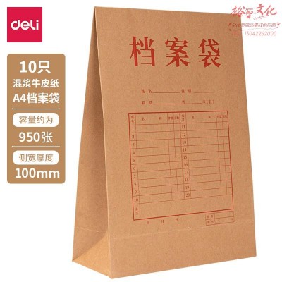得力(deli)10只A4混浆250g牛皮纸档案袋 侧宽10cm 大容量标书合同文件资料袋 办公用品 8387 SKU:yzwhyp203321