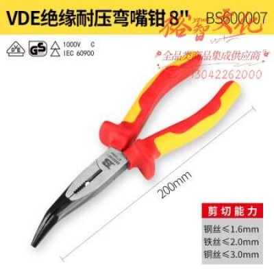 波斯(BOSI)VDE绝缘耐压弯嘴钳弯口钳省力耐高压电工钳电线钳钳子 BS600007(8寸) SKU:yzwhyp316017