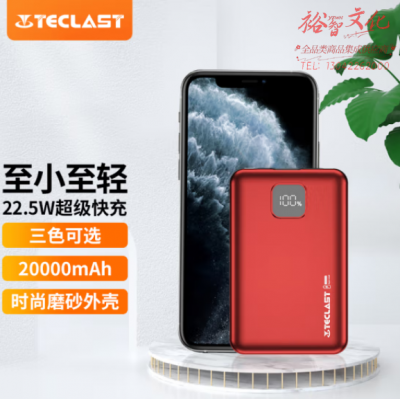 首页 > 电气设备 > 蓄电池及充电装置 > 台电(TECLAST)X20Pro-R朱砂红 移动电源20000毫安时 超薄充电宝22.5W/PD20W快充 数显磨砂 适用于苹果安卓 SKU:yzwhyp316187