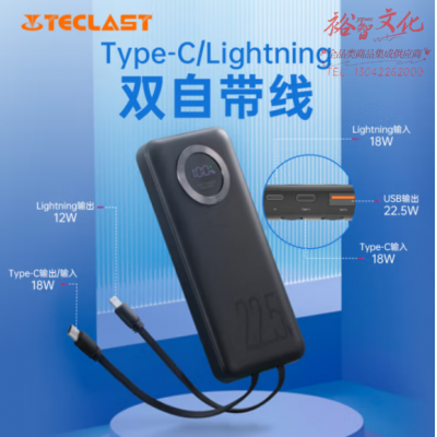 首页 > 电气设备 > 蓄电池及充电装置 > 台电(TECLAST)E10Pro-K黑 充电宝自带线10000毫安时 22.5W快充/PD18W快充移动电源 适用于苹果安卓华为小米 SKU:yzwhyp316196