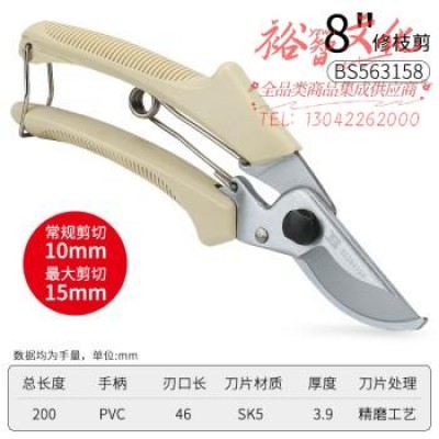 波斯(BOSI)基础款修枝剪花剪树枝园林工具粗枝剪修果树省力剪刀 BS563158(8寸) SKU:yzwhyp316295