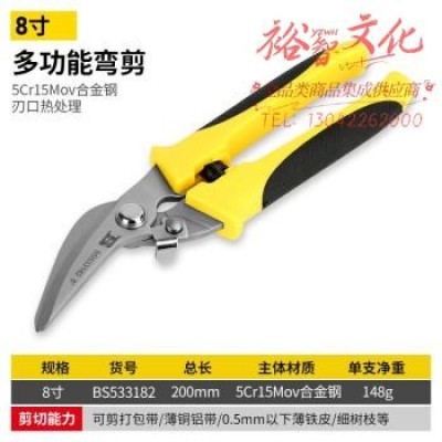 波斯(BOSI)多功能弯剪双色防滑手柄电工剪电线槽剪刀 BS533182(8寸) SKU:yzwhyp316332