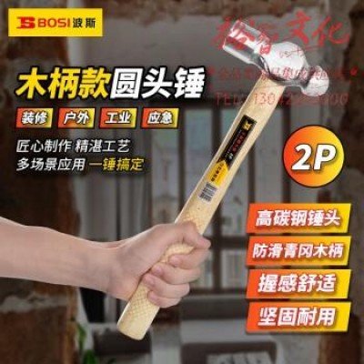 波斯(BOSI)木柄圆头锤防滑锤子榔头铁锤钢锤 BS350902(2P) SKU:yzwhyp316360