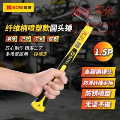 波斯(BOSI)纤维柄喷塑圆头锤防滑锤子榔头铁锤钢锤 BS351015(1.5P) SKU:yzwhyp316368