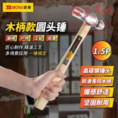 波斯(BOSI)木柄圆头锤防滑锤子榔头铁锤钢锤 BS350915(1.5P) SKU:yzwhyp316402