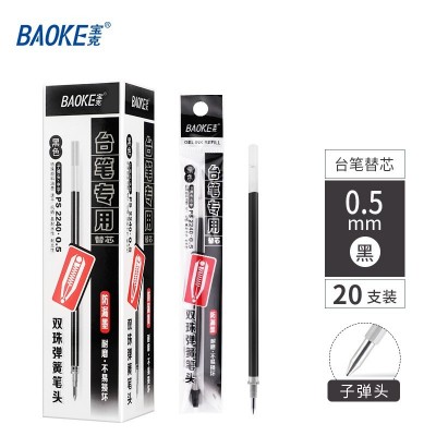 宝克(baoke) PS2240 双珠弹簧笔头台式替芯 中性台笔芯/学生水笔替芯 适配:NO850、TB896 0.5mm 20支装 黑色