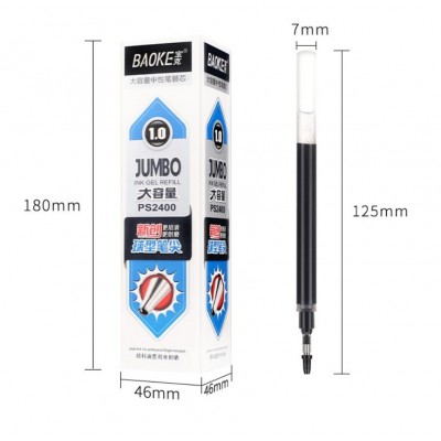 宝克(baoke) PS2400 球形笔尖大容量中性笔芯 学生用品/商务办公替芯 1.0mm 12支装 黑色