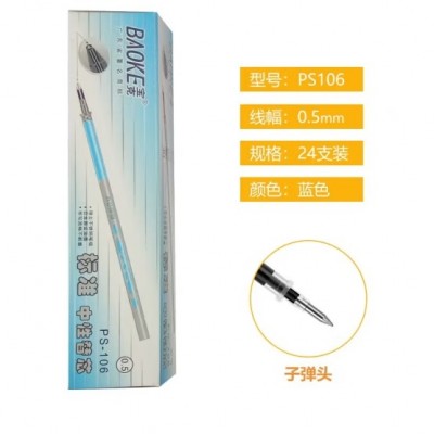 宝克(baoke) PS106 标准版子弹头中性笔芯 商务办公/学生考试替芯 0.5mm 24支装 蓝色