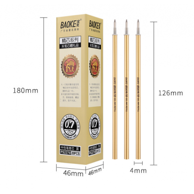 宝克(baoke) PS2270 子弹头中性笔芯 商务办公/学生考试水笔替芯 0.7mm 20支装 黑色