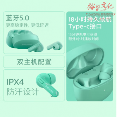 飞利浦(PHILIPS)TAT2206真无线蓝牙耳机回音降噪AAC高清音质 绿 SKU:yzwhyp109074