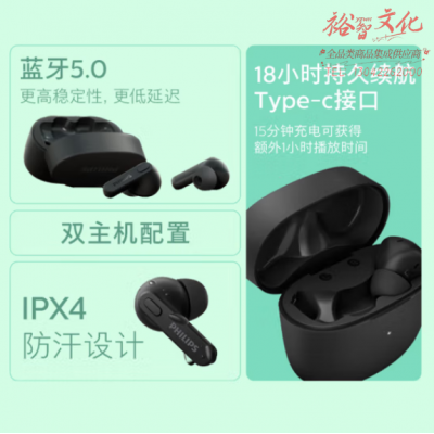 飞利浦(PHILIPS)TAT2206真无线蓝牙耳机回音降噪AAC高清音质 黑 SKU:yzwhyp109075