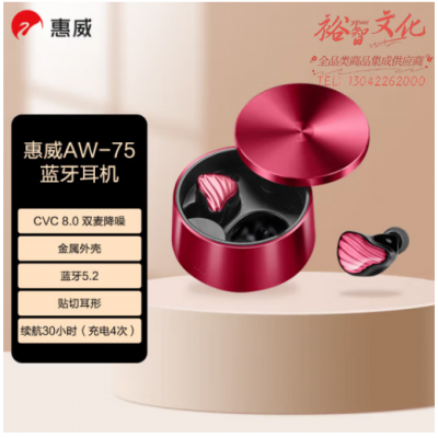 惠威(HiVi)AW-75 无线蓝牙耳机 真无线HiFi耳机 蓝牙5.2长续航支持通话降噪 茜红 SKU:yzwhyp109118