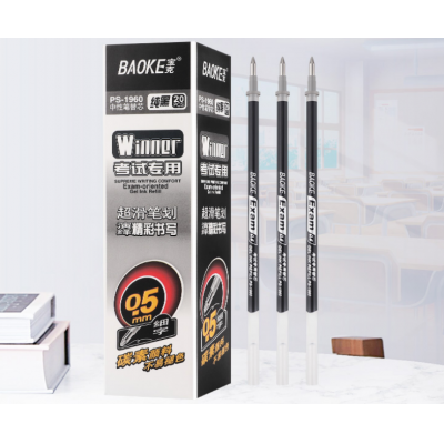 宝克(baoke) PS1960 子弹头考试专用中性笔芯 商务办公/学生考试水笔替芯 0.5mm 20支装 黑色