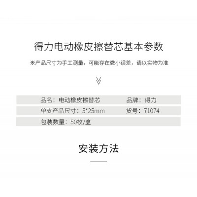 得力(deli) 50枚电动橡皮擦替芯 学生白色橡皮擦盒装 71074 SKU:yzwhyp203469
