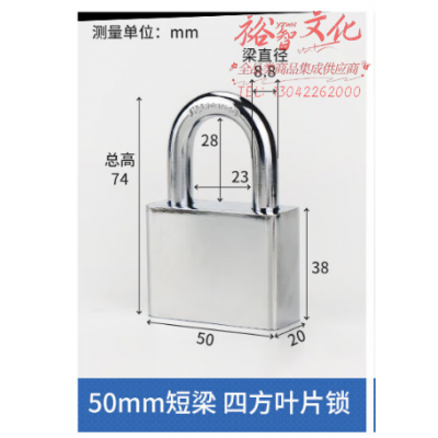 海斯迪克 挂锁 方形防水防盗仓库门锁窗锁工具锁 单开3把钥匙 50mm短梁 HKL-502 SKU:yzwhyp317677