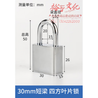 海斯迪克 挂锁 方形防水防盗仓库门锁窗锁工具锁 单开3把钥匙 30mm短梁 HKL-502 SKU:yzwhyp317703