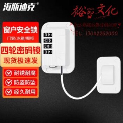 海斯迪克 HKL-280 免打孔安全锁 窗户锁扣抽屉锁 窗户限位器 四轮密码锁(白) SKU:yzwhyp317709