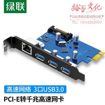 绿联30775 PCI-E转千兆网卡 3口USB3.0HUB台式机主机箱电脑内置自适应有线网卡 SKU:yzwhyp317763