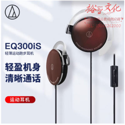 铁三角 EQ300iS 轻薄耳挂式运动跑步耳机 手机耳机 学生网课 有线通话 音乐耳机 棕色 SKU:yzwhyp109465