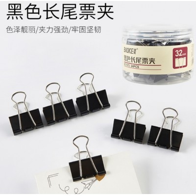 宝克(baoke) BC1373 32mm黑色长尾票夹/办公燕尾夹/学生凤尾夹 24个装