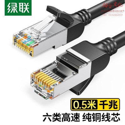 绿联(UGREEN) 50190 六类纯铜网线 CAT6类千兆网络高速连接线 电脑宽带8芯双绞线 家用成品跳线黑色0.5米 SKU:yzwhyp317868