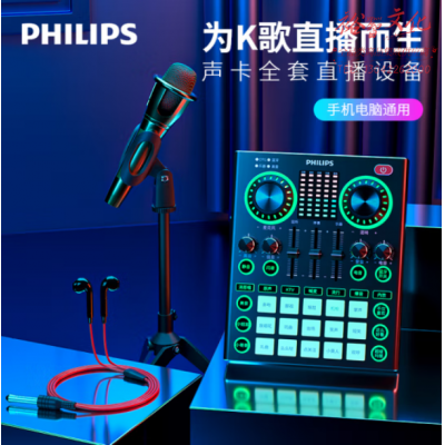 首页 > 广播、电视、电影设备 > 组合音像设备 > 会议、广播及音乐欣赏系统 > 飞利浦(PHILIPS)直播声卡套装 手机电脑直播设备蓝牙无线伴奏 主播唱歌录音+DLM3008U(含无线麦) SKU:yzwhyp109562