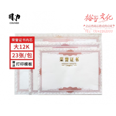 首页 > 办公用品 > 文具 > 国为(COUVEZI)【10本装】可定制荣誉证书外壳红色绒面颁奖奖状 12k内芯(23张装) SKU:yzwhyp317920